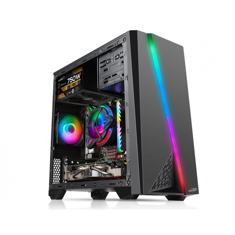 El gabinete gamer SENTEY F10 posee una ventana transparente acrílica en su lateral posibilitando la visualización de todos los periféricos gamer con luz LED que le sumes al equipo y otorgándole una estética superior.