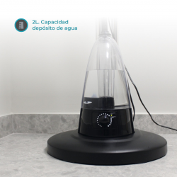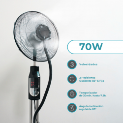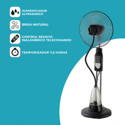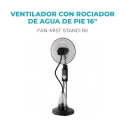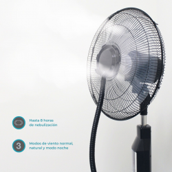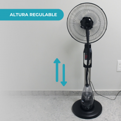 El ventilador de pie 16″ con rociador de agua integra un tanque de 4 litros y sistema de nebulización ajustable para proporcionar una sensación de frescura más natural.